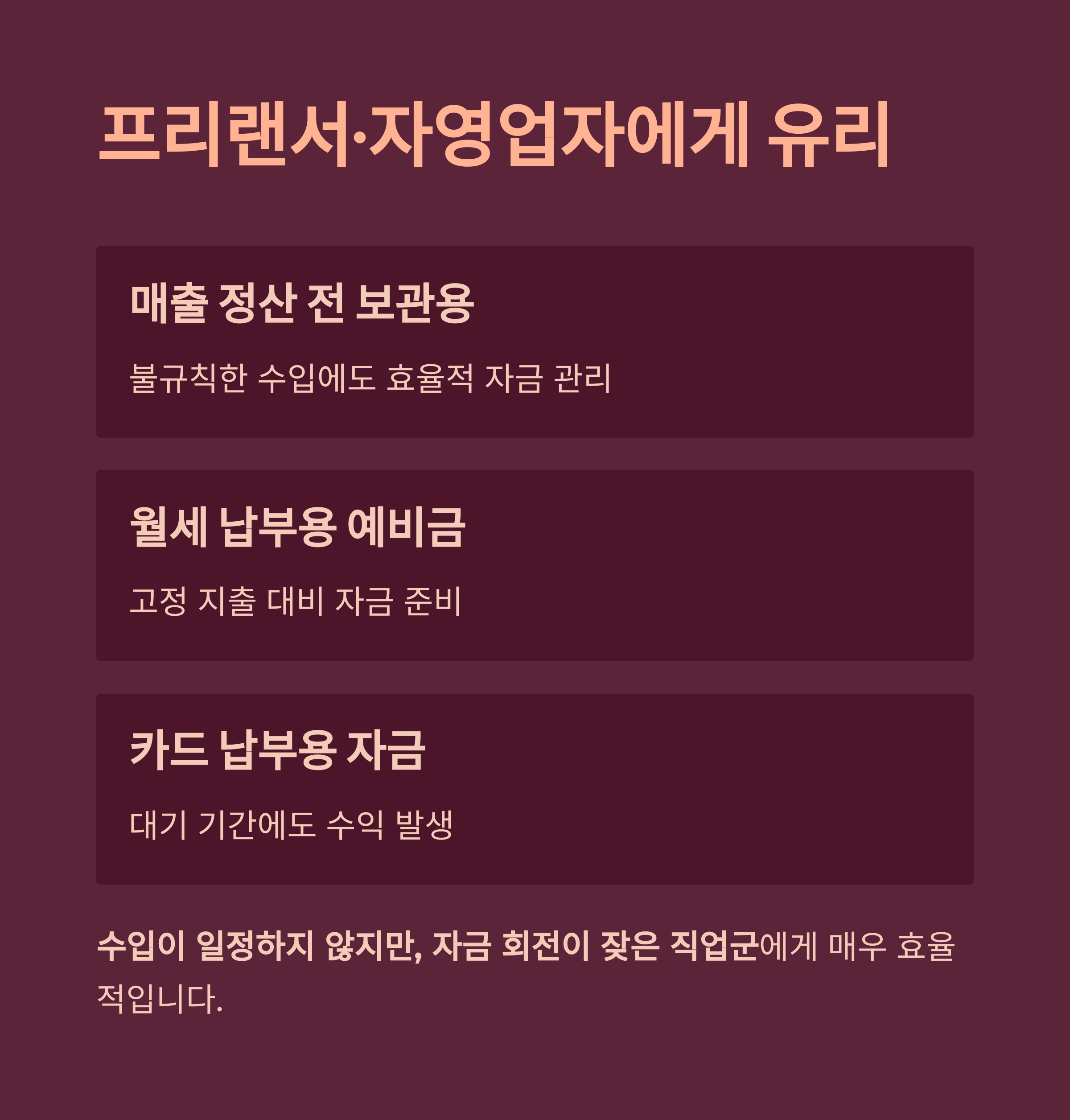 고정 월급이 없는 프리랜서나 자영업자는 잠깐 맡겨두는 돈도 최대한 활용해야 하기 때문에