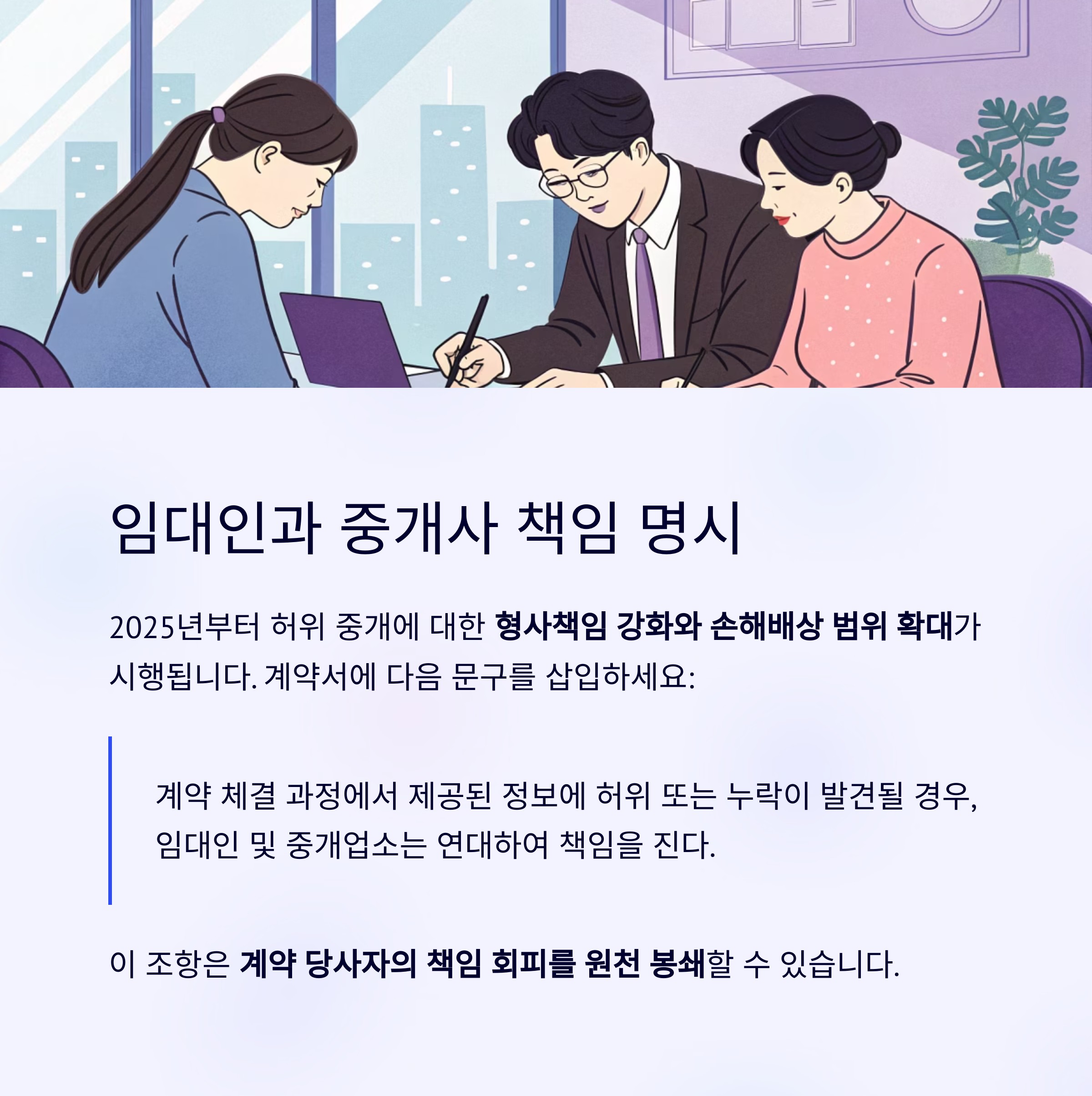 2025년부터는 허위 중개에 대한 형사책임 강화와 손해배상 범위 확대가 시행됩니다.