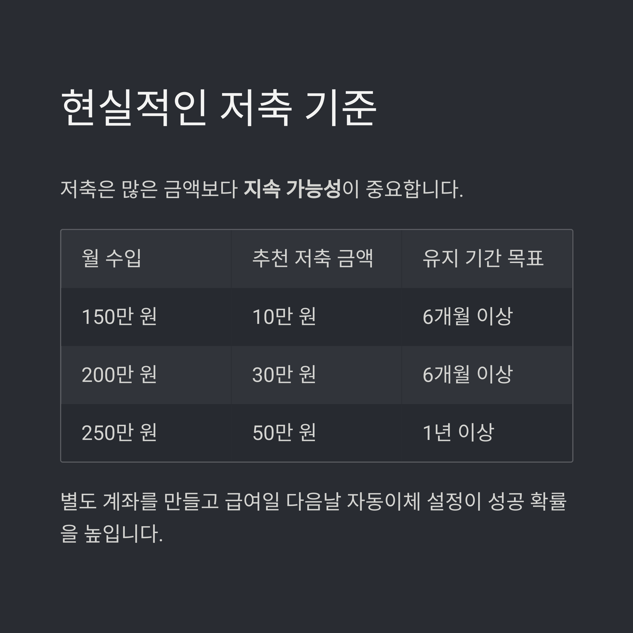 20대라면 아래와 같은 기준으로 저축 금액을 설정해보세요.