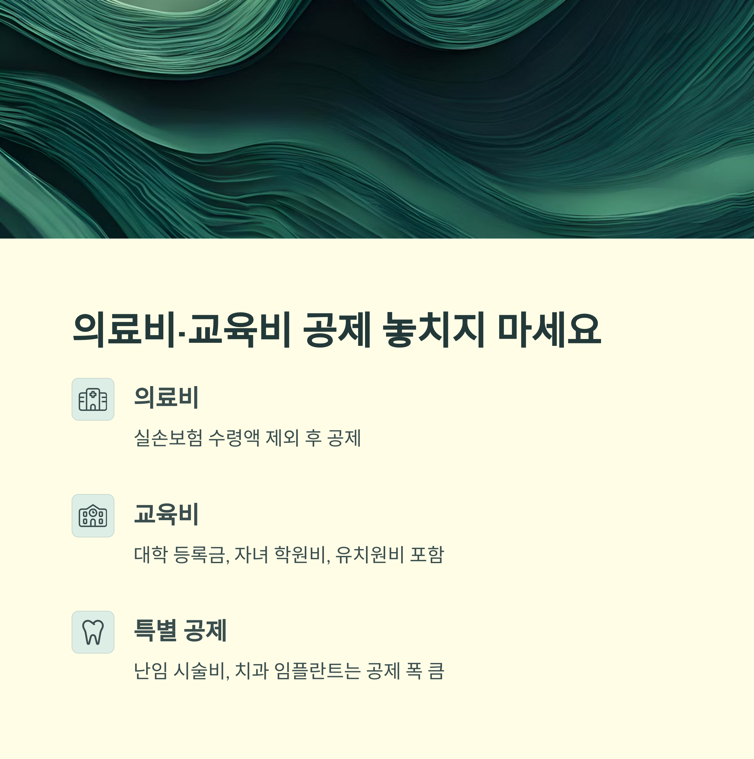전략 팁: 난임 시술비, 치과 임플란트, 장애인 관련 의료비는 일반보다 공제 폭이 큽니다