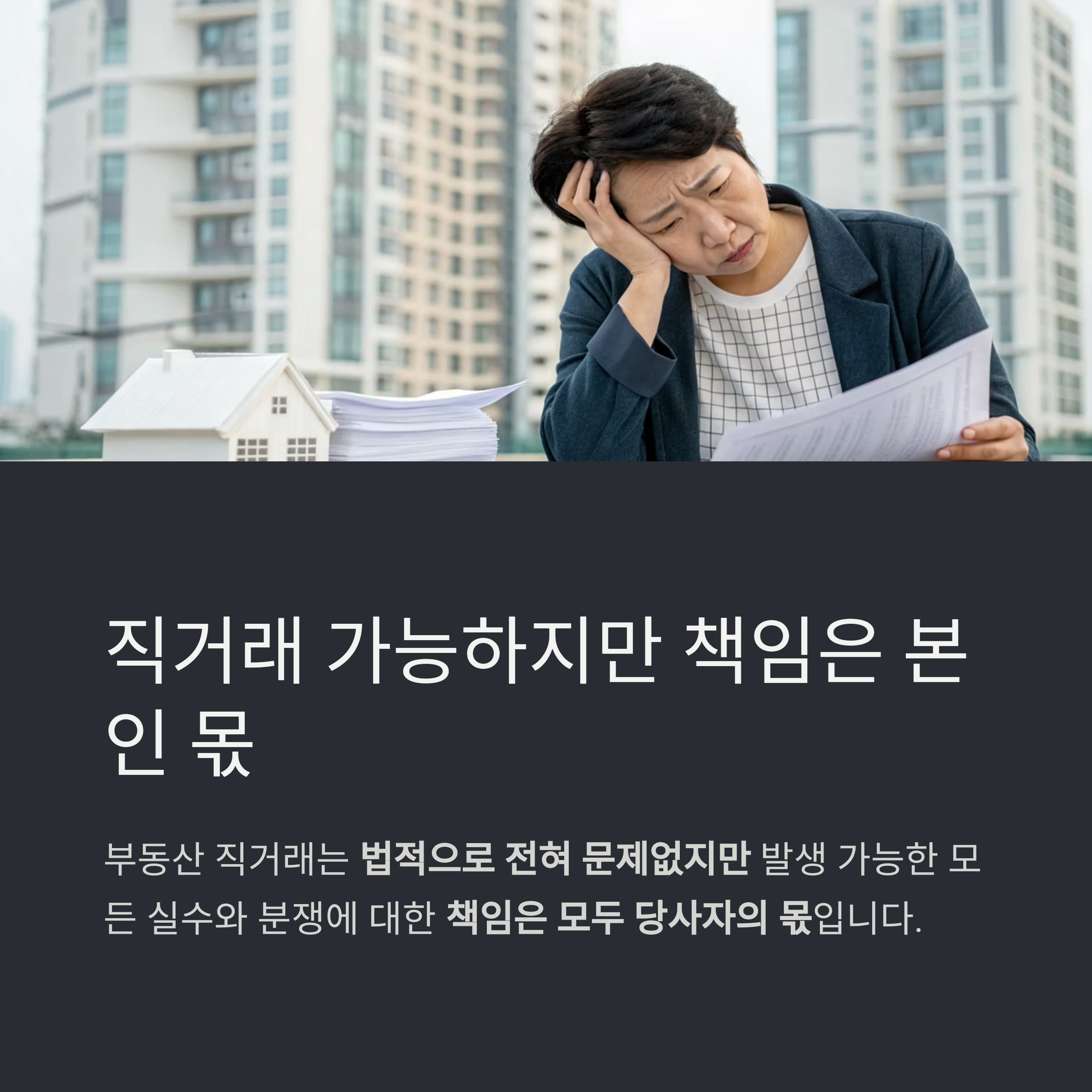 그만큼 계약 실수, 권리 누락, 세금 오류 등 모든 책임을 본인이 부담해야 한다는 점을 반드시 인식해야 합니다.