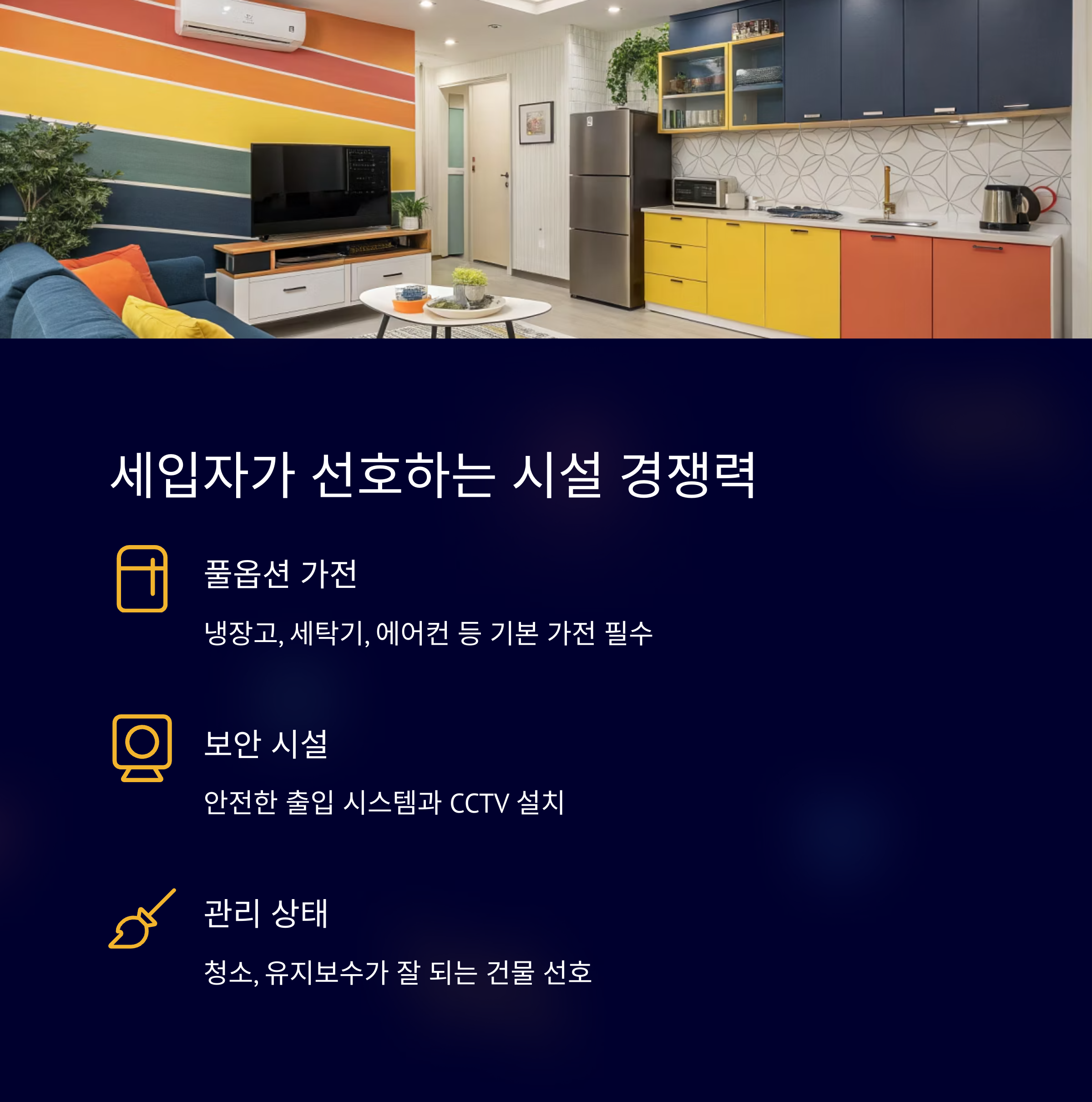 시설 경쟁력 – 풀옵션과 신축 관리 상태가 변수