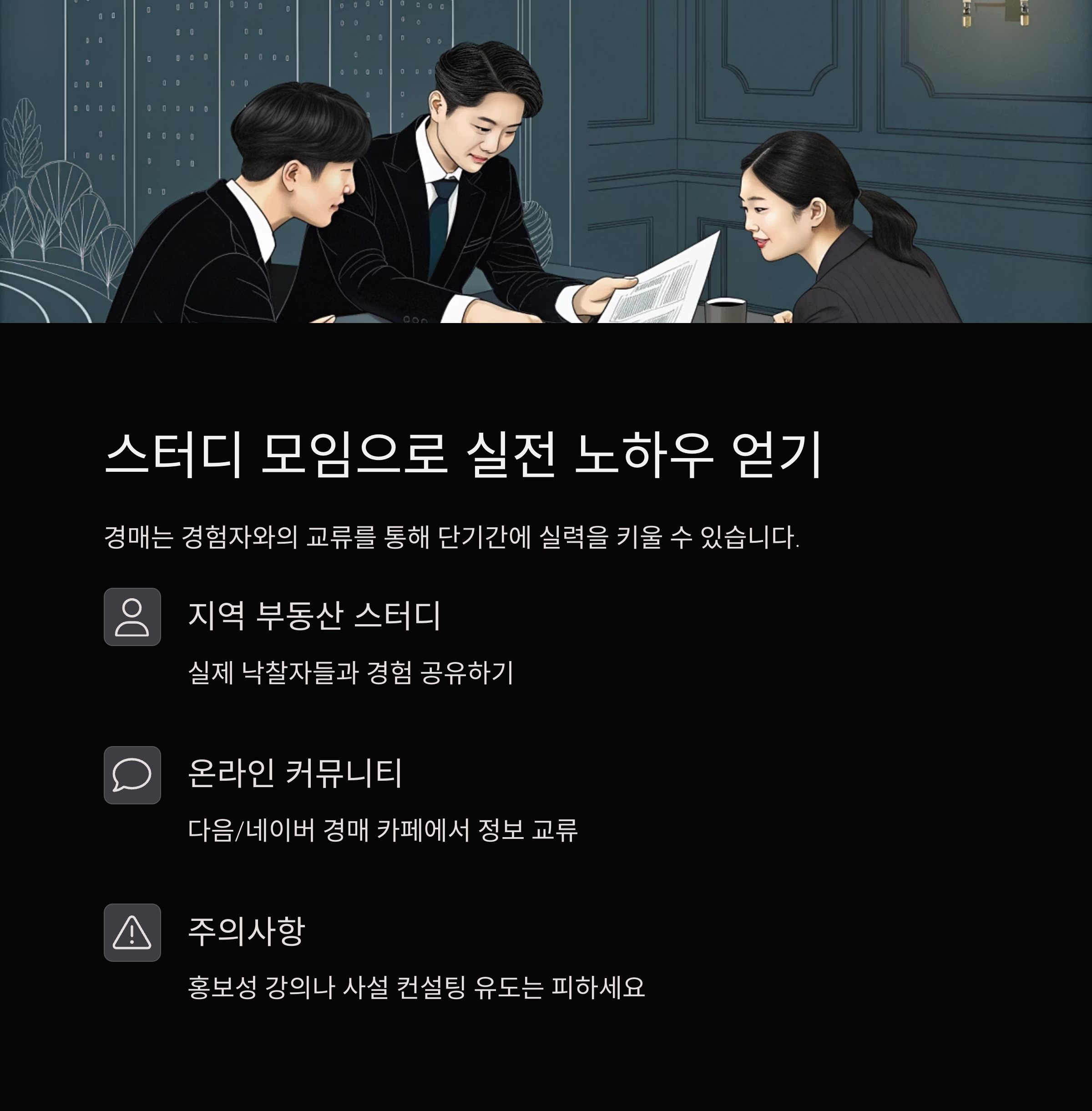 경매는 경험자와의 교류를 통해 단기간에 실력을 키울 수 있습니다