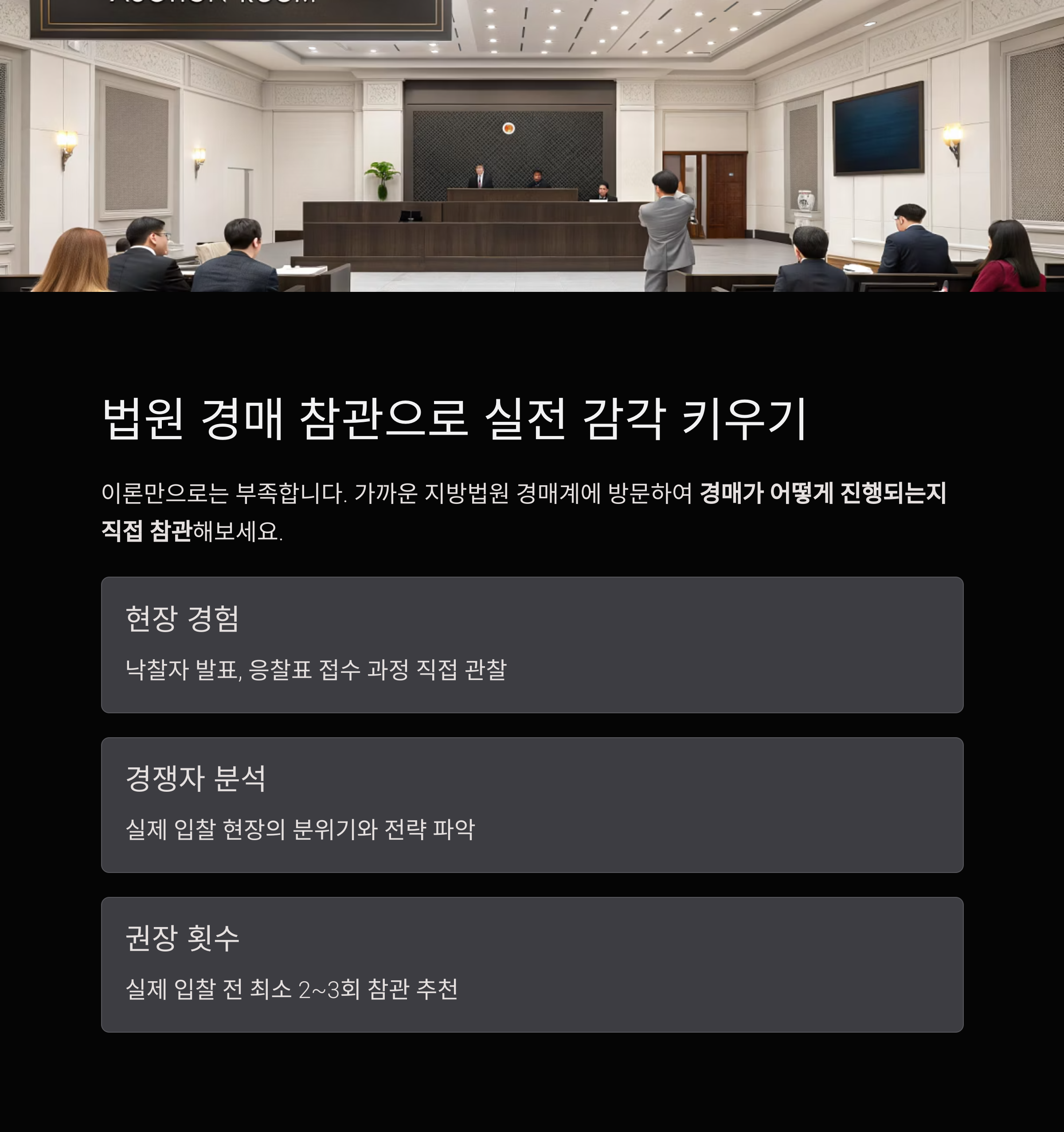"경매 절차 총정리", "경매 실수 10가지", "초보 낙찰자 후기" 등