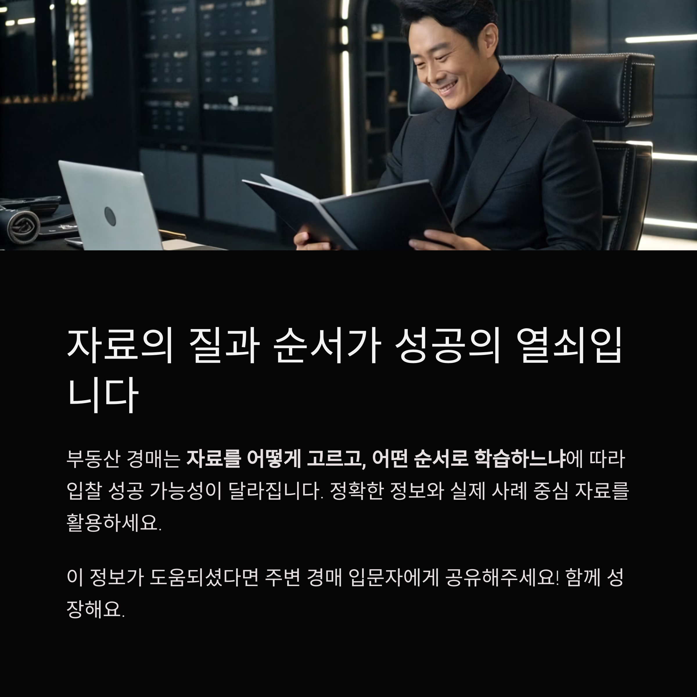 "경매 절차 총정리", "경매 실수 10가지", "초보 낙찰자 후기" 등