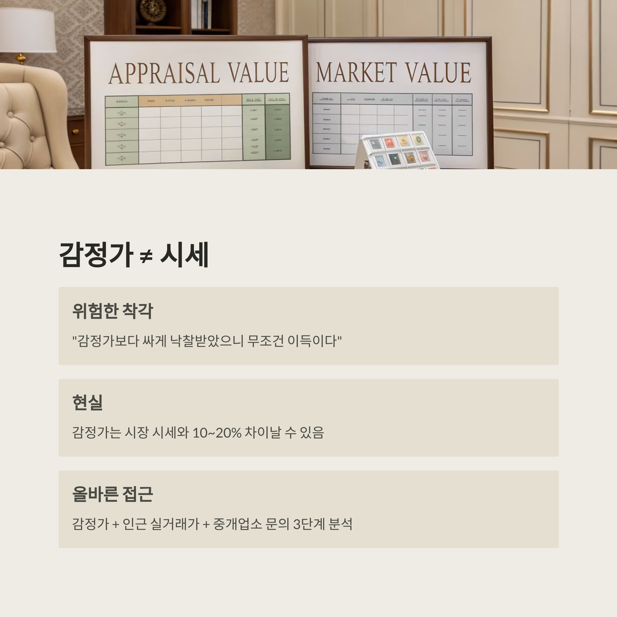 초보자는 "감정가보다 싸게 낙찰받았으니 무조건 이득이다"라고 판단하기 쉽습니다