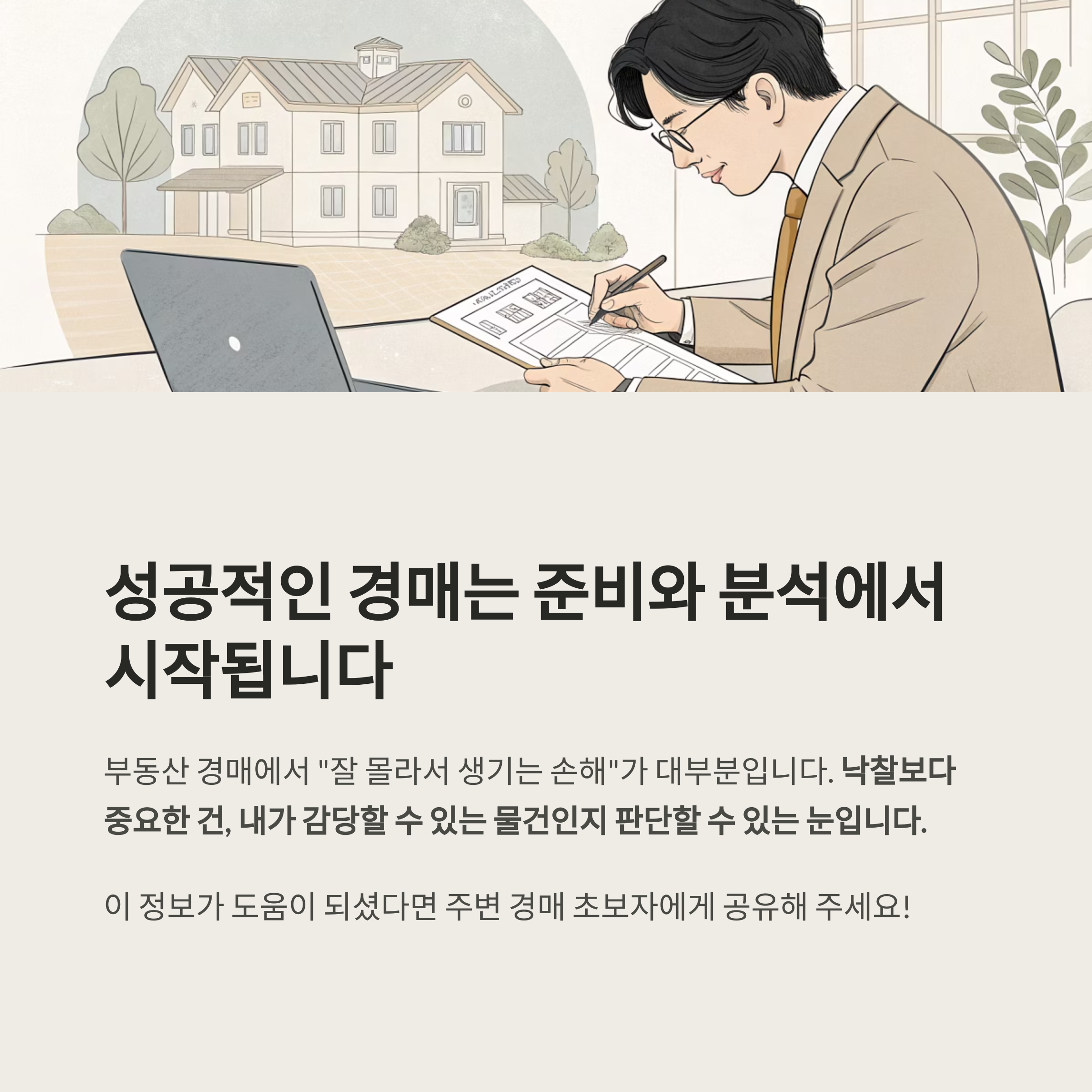 마무리 정리: 경매에서 피해야 할 실수는 ‘사소한 판단 착오’입니다