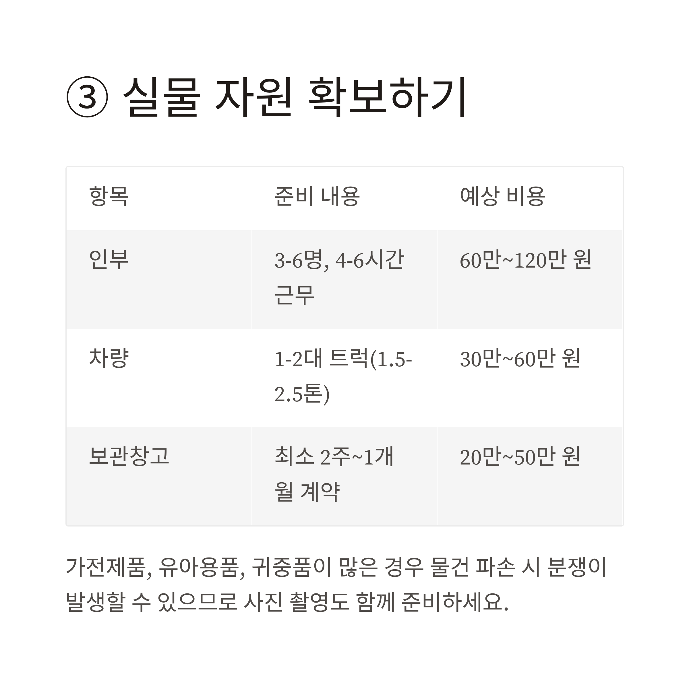 인부, 차량, 보관장소 확보는 사전 준비 중 가장 실무적인 핵심입니다