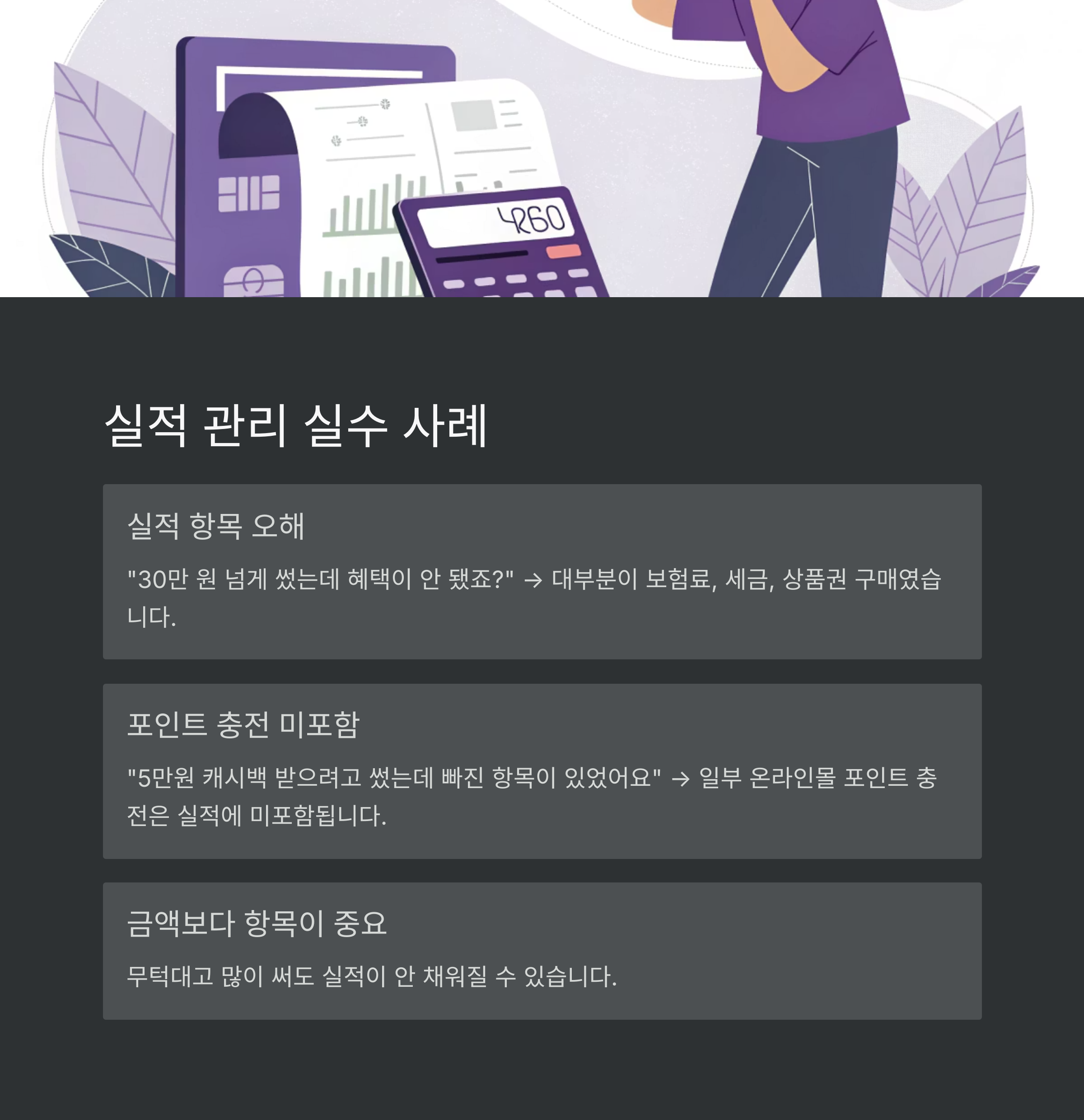 그런데 이 실적을 잘못 이해하면 혜택은커녕 손해만 볼 수 있죠.