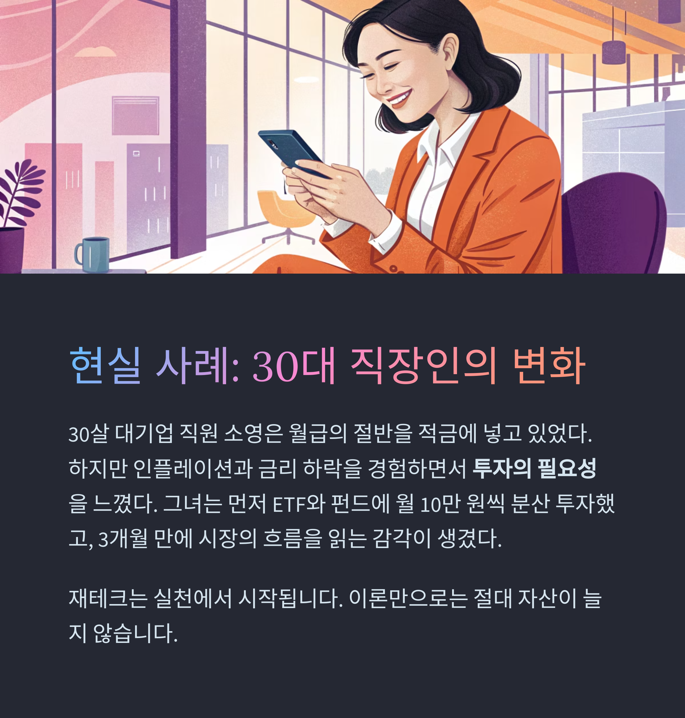 재테크는 실천에서 시작됩니다. 이론만으로는 절대 자산이 늘지 않습니다.