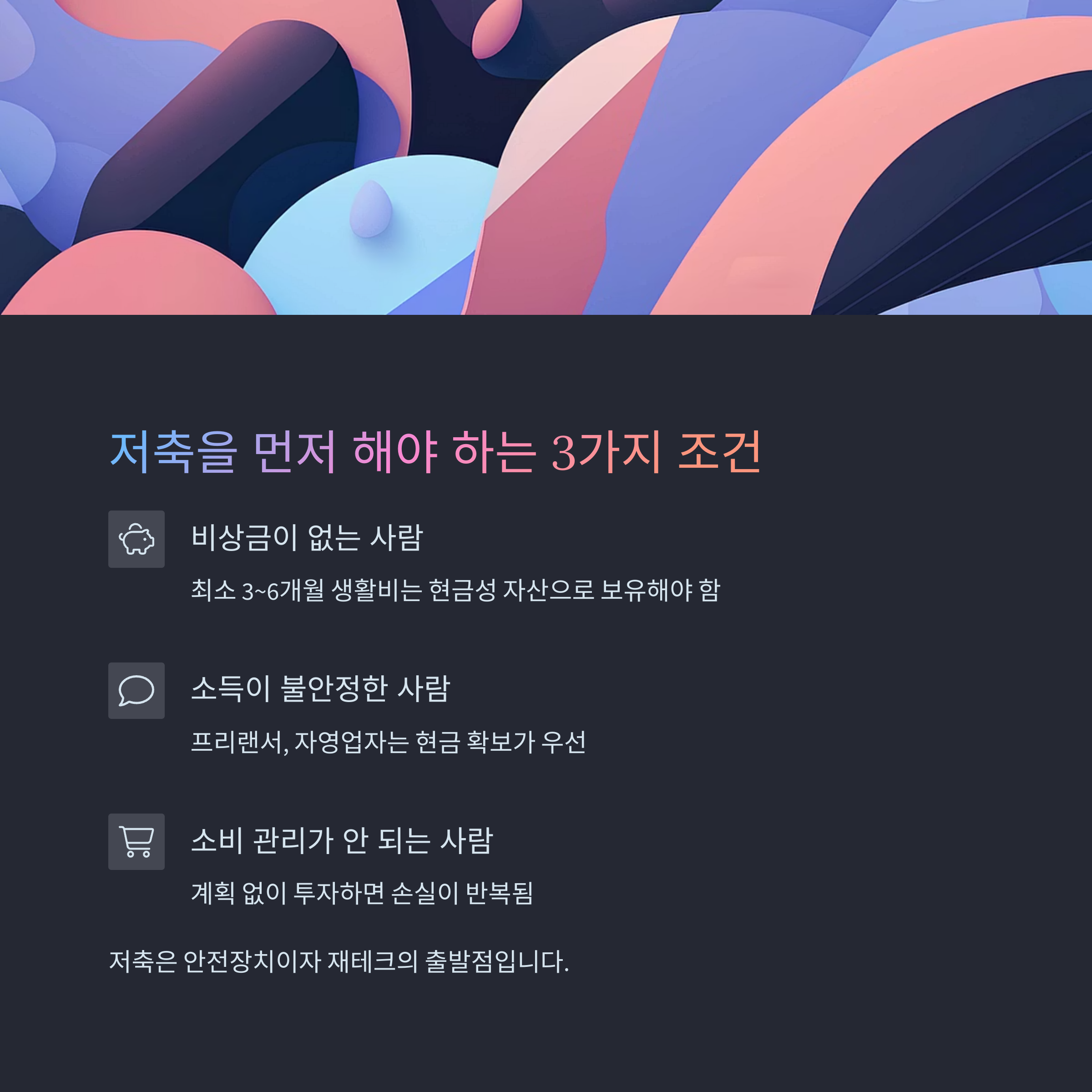 저축은 안전장치이자 재테크의 출발점이라는 사실을 잊지 마세요.